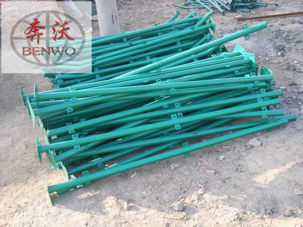 底盤式的公路護欄網:這種裝置起來比較簡單,立柱底盤和4個膨脹螺絲合作,讓立柱直直的立在公路上,之后再將網片擰在立柱的耳朵上,值得留意的是,立柱有必要堅持水平狀況,立柱與立柱的間隔是3米.
