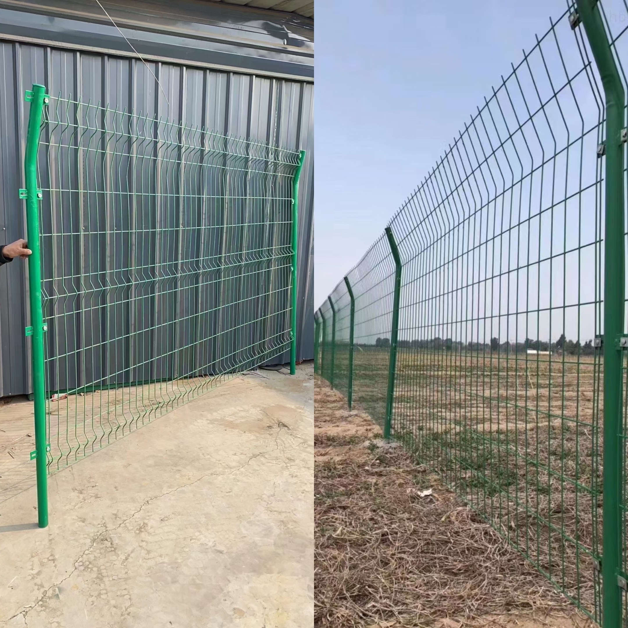 雙邊護欄網和三角折彎護欄網最大的區別就是在金屬網片上面。雙邊護欄網網片支撐力不如三角折彎護欄網,其中原因就是三角折彎護欄網網片上面有幾道可以增加支撐力的三角折彎而得名。下面給大家兩種圖片對比下就可以清楚的看出區別了。