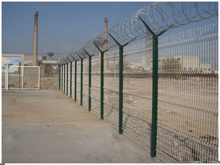 機場護欄網又稱作“Y型柱護欄網”,是由V型支架立柱,加強型焊接片網,安全防盜連接件和熱鍍鋅刀片刺籠組成加強度和安全防御性級別很高。近年來,被廣泛應用在機場,軍事基地等高安全場所。注:如果在機場護欄網頂部加裝刀片刺絲,刀片刺繩后有很好的增強了安全防護性能。采用電鍍,熱鍍 噴塑 ,浸塑等防銹形式,具有很好的抗老化,抗曬,耐候等特點。其產品造型美觀,花色多樣,既起到圍欄作用,又起到美化作用。由于具有安全性高,防攀爬能力好,網片連接方式采用特制SBS緊扣件,有效防止人為的破壞性拆除,橫向四道折彎加強筋,使網面強度明顯著增加。